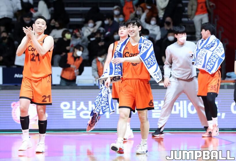 올시즌 팬들이 많아졌다고 느껴요. 관중도 많아지다 보니 경기하는 게 더 재밌어요. LG전(4일)에서 성현이 형이 연속으로 3점슛 넣으니까 분위기가 오른다는 게 느껴졌어요. 처음이었어요. 지난 시즌 SK랑 4강 플레이오프를 치를 때 SK가 경기를 뒤집는 과정에서 함성이 지지 않을 것처럼 느껴졌거든요. 우리도 그랬으면 좋겠다고 생각했는데, 팬들이 해주셨어요. 지금 생각해도 소름 돋아요. 저희 팬들이 더 많아졌으면 좋겠어요. 10개 구단 중에 우리가 제일 재밌게 경기하는 것 같아요(웃음). 좋은 경기 하려고 최선을 다하고, 경기 후 팬서비스나 예능 유튜브 등 다방면에서도 발전하는 캐롯이 될게요.