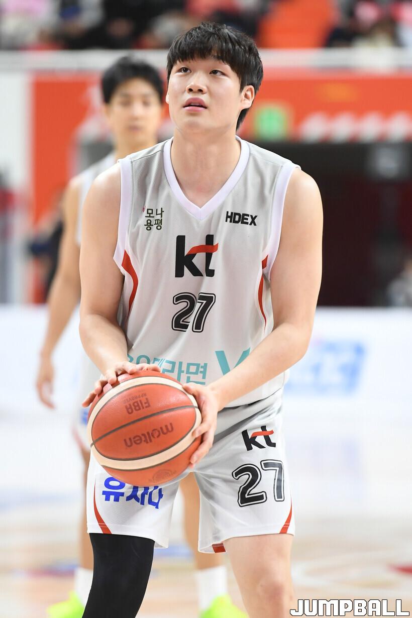 KT는 1쿼터 한 때 11-22로 끌려갔지만, 2쿼터에서 26-16으로 압도하며 전반을 39-38로 역전했다. KT가 역전하는 발판에는 수비가 있다. 박성재는 수비뿐만 아니라 공격에서 한몫했다. 3점슛 성공과 더불어 속공 레이업으로 득점을 올렸다. 박성재는 2쿼터 동안 신인답지 않은 존재감을 드러냈다.