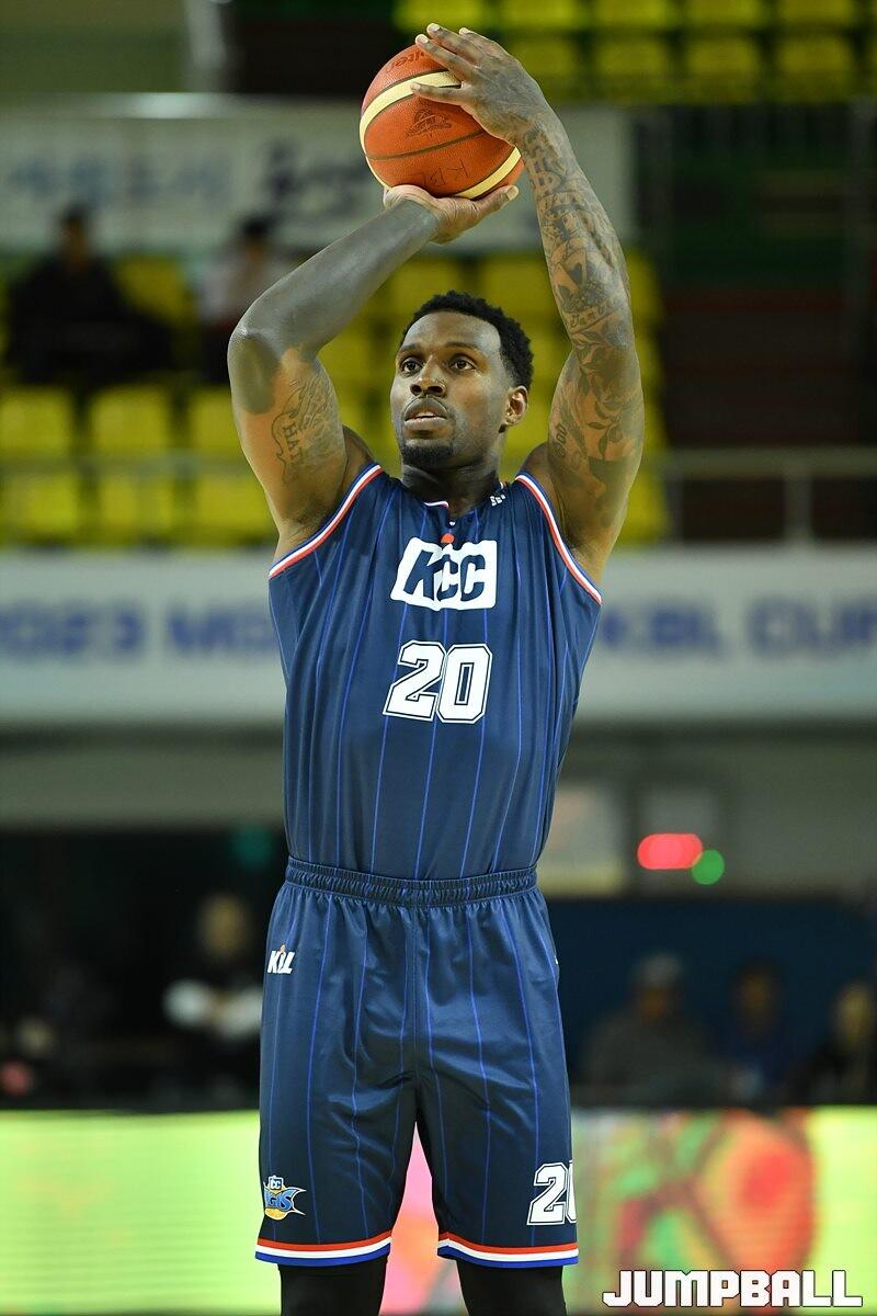 13일 군산월명체육관에서 열린 2023 MG새마을금고 KBL 컵대회 LG와 KCC의 예선 경기, KCC 라건아가 3점슛을 시도하고 있다. [점프볼=군산/유용우 기자]