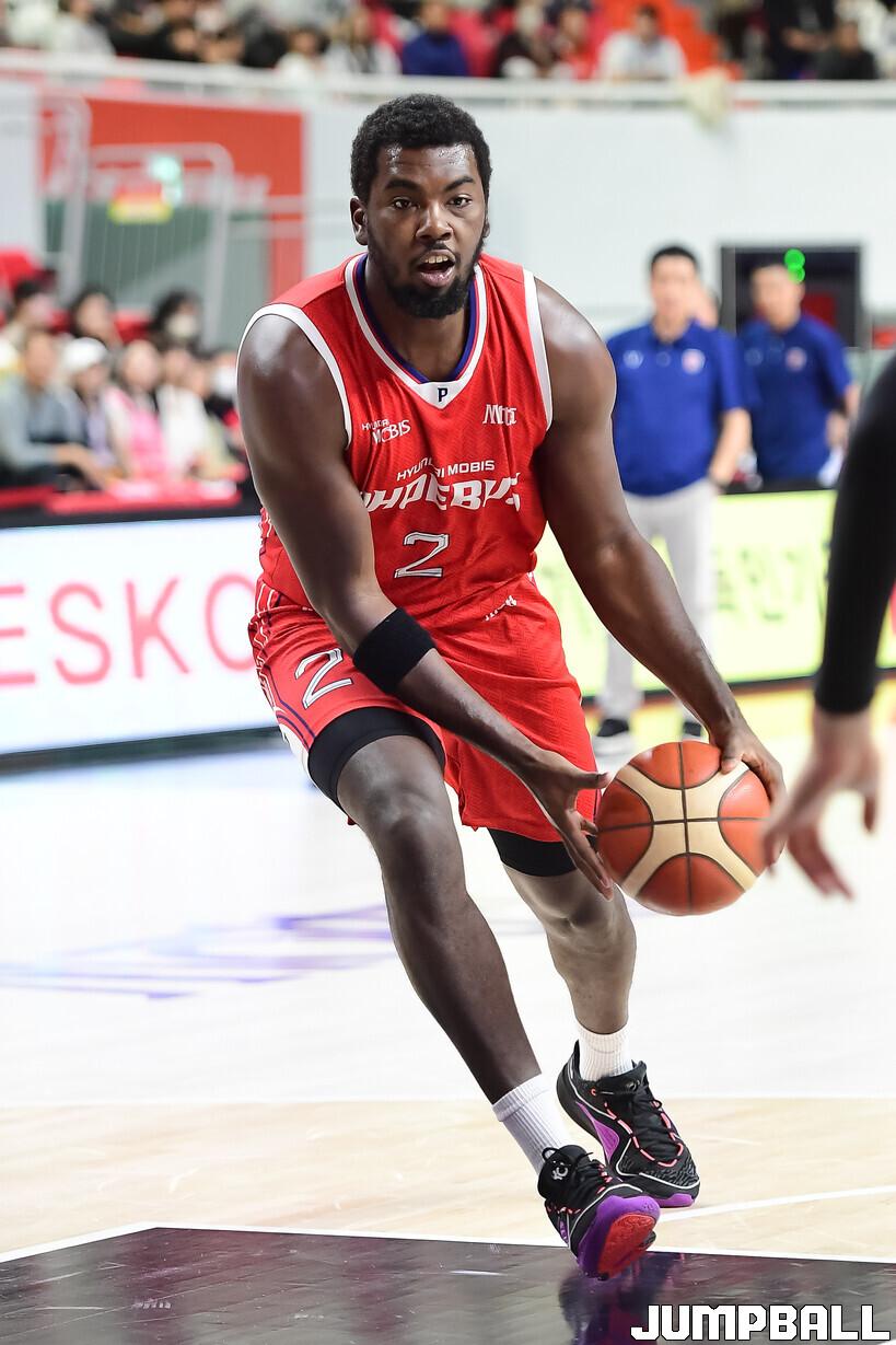 [점프볼=울산/박상혁 기자] 9일 울산동천체육관에서 열린 2025-2026 LG전자 프로농구 울산 현대모비스와 안양 정관장의 경기, 현대모비스 해먼즈가 돌파를 시도하고 있다.