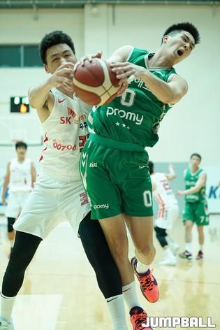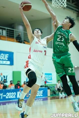 3일 이천에 위치한 LG챔피언스파크에서 열린 2021-2022 KBL D-리그 DB와 SK의 경기, DB 이용우가 슛을 던지고 있다.