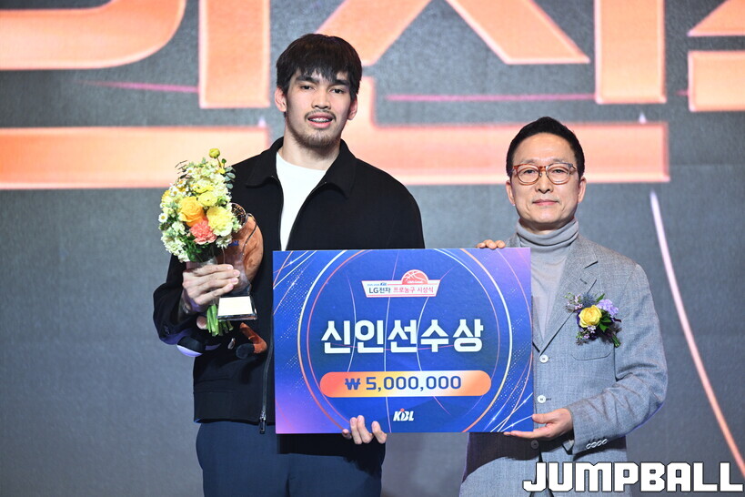 KBL은 9일 그랜드 인터컨티넨탈 서울 파르나스 그랜드 볼룸에서 2025-2026 LG전자 프로농구 시상식을 개최했다. 켐바오는 기자단 투표에서 117표 가운데 105표를 획득, 신인상의 주인공이 됐다. 차점자는 6표에 그친 강성욱(KT)이었다.