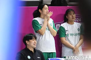 [점프볼=아산/박상혁 기자] 3일 아산 이순신체육관에서 열린 2024 우리은행 박신자컵 우리은행 우리WON과 KB스타즈의 경기, KB스타즈 성수연이 볼을 가지고 팀 동료를 바라보고 있다.