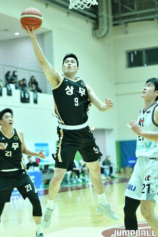 [점프볼=이천/유용우 기자] 10일 이천 LG챔피언스파크에서 열린 2023-2024 KBL D리그 상무와 KT의 경기, KT 최성모가 돌파하고 있다.