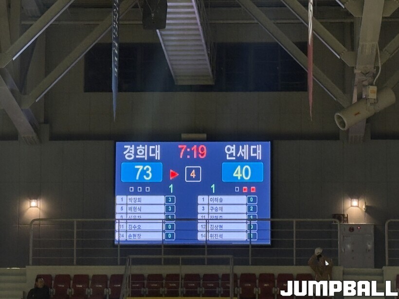 공격리바운드는 11개나 따냈고, 상대의 턴오버는 11개나 이끌어냈다. 그 사이 4학년(김서원-임성채) 듀오를 필두로, 골고루 득점을 올렸다. 특히 2쿼터 종료 1분 여를 남겨두고 터진 김서원의 3점슛으로, 43-23까지 달아났다. 그렇게 좋은 힘들이 더해진 경희대는 43-25, 너무나 큰 격차로 전반전을 마칠 수 있었다.
