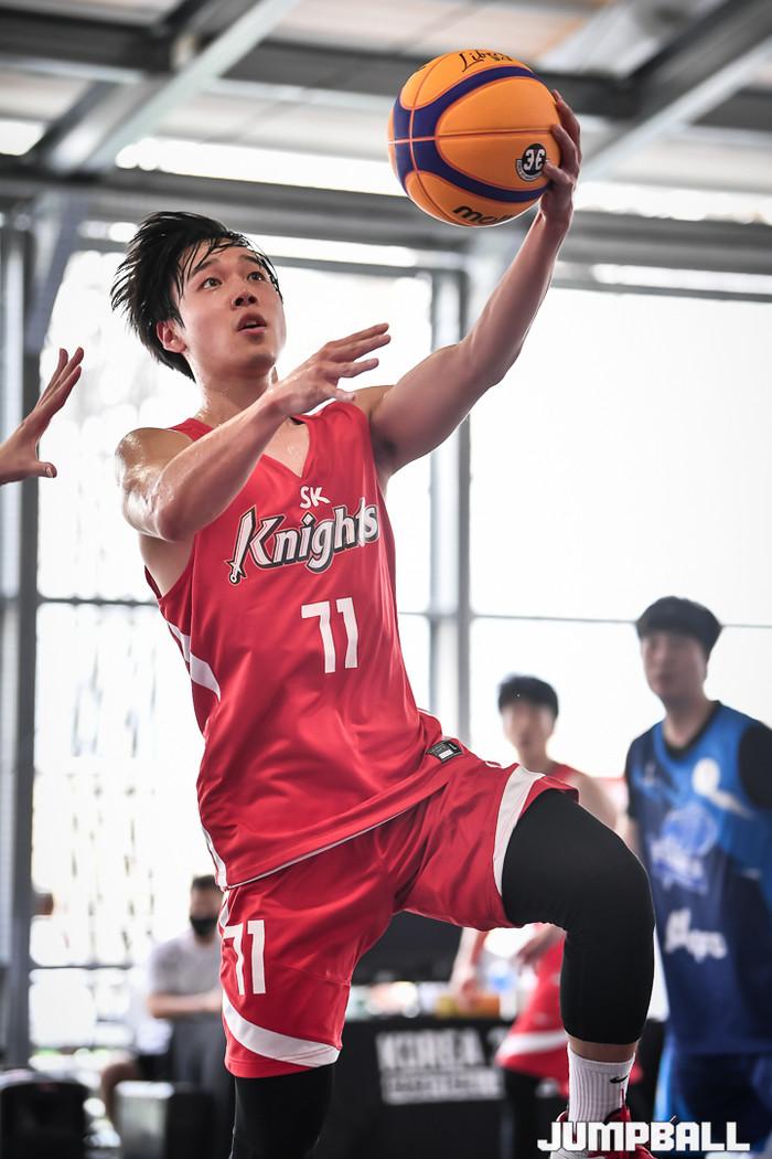 [점프볼=고양/유용우 기자] 16일 스타필드 고양 루프탑에 위치한 스포츠 몬스터 코트에서  열린 '까스명수 THE ORIGINAL 3대3농구대잔치' SK와 아프리카프릭스의 준결승 경기, SK 김준성이 레이업을 올리고 있다.