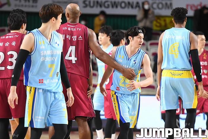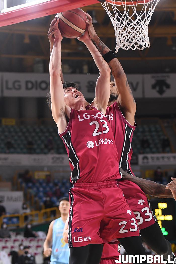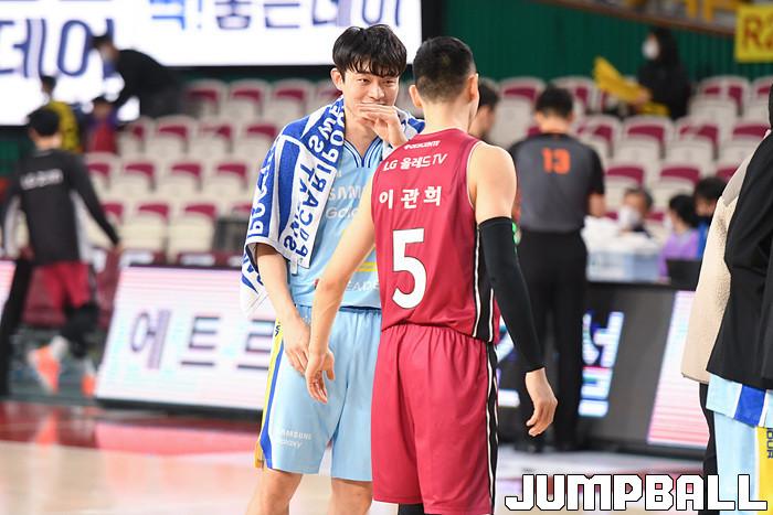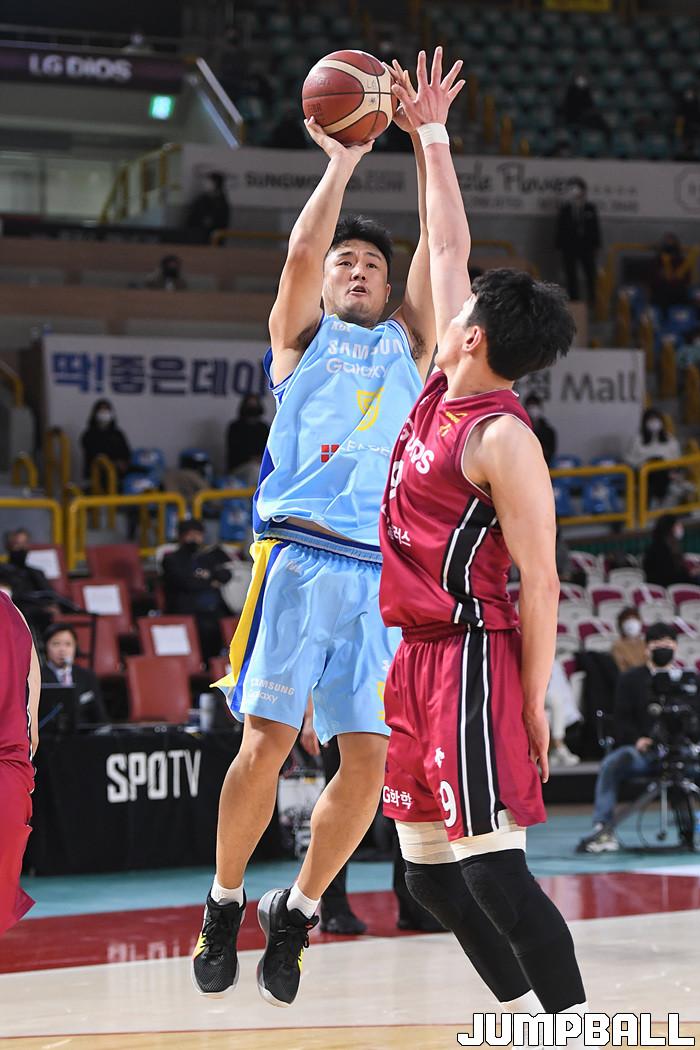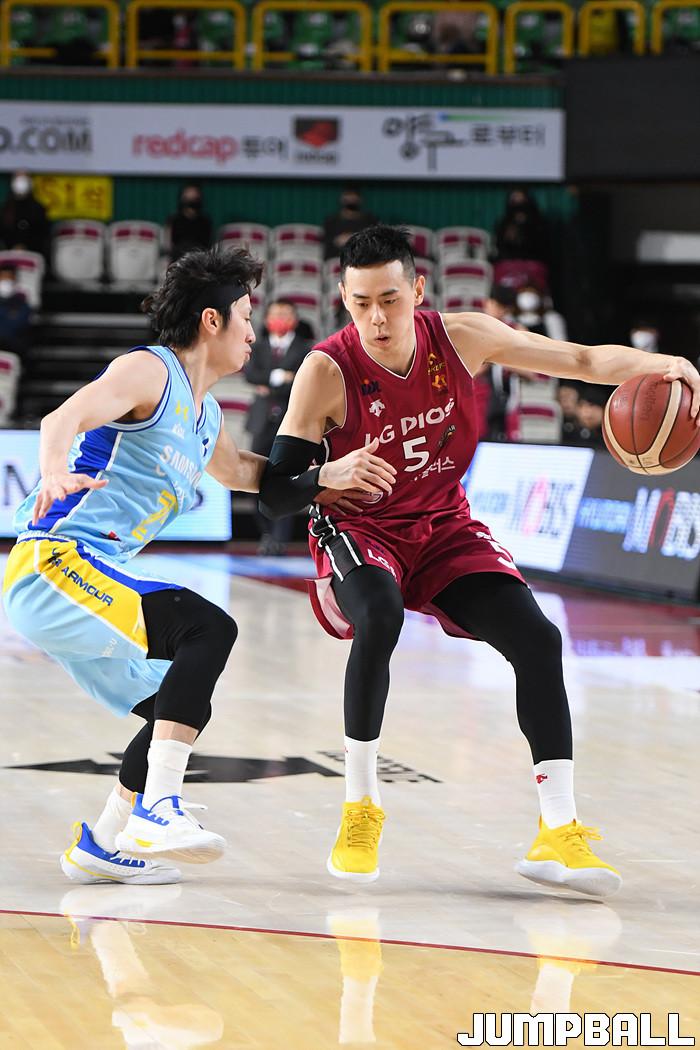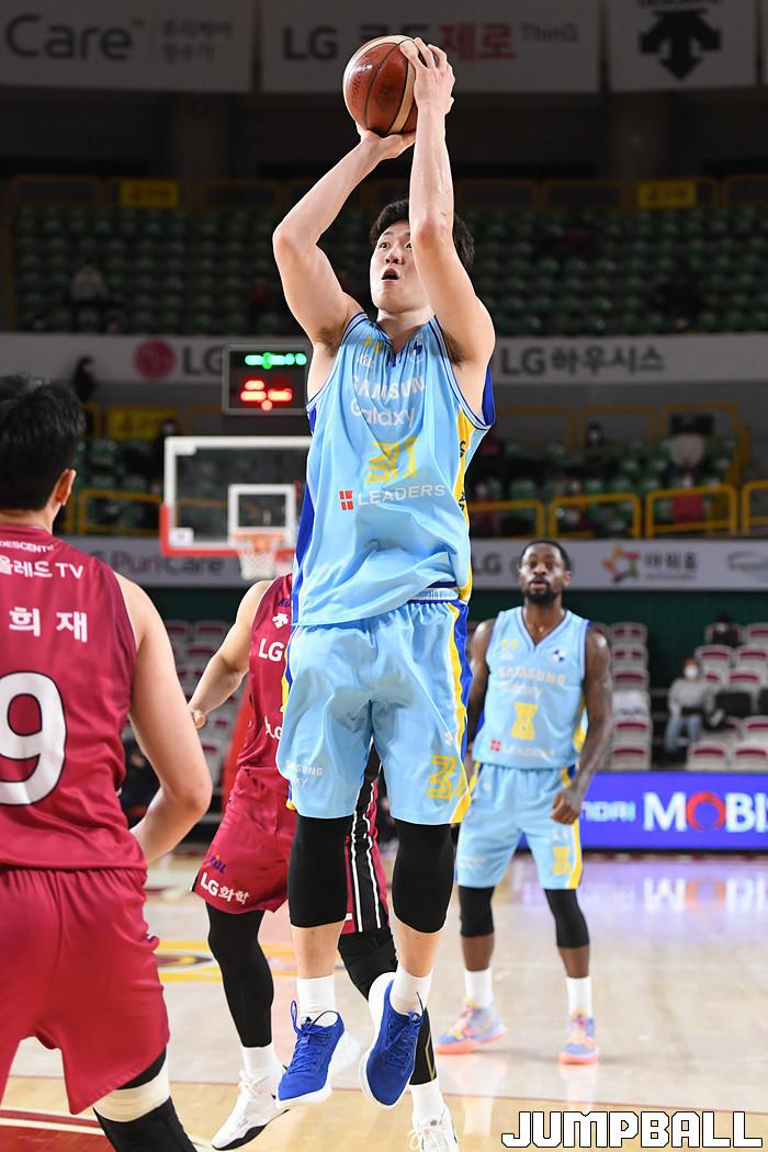 [점프볼=창원/박상혁 기자] 6일 창원실내체육관에서 열린 2020-2021 현대모비스 프로농구 창원 LG와 서울 삼성의 경기, 삼성이 트레이드 후 처음으로 가진 경기에서 LG에 73-64로 승리했다. LG와 삼성 화보