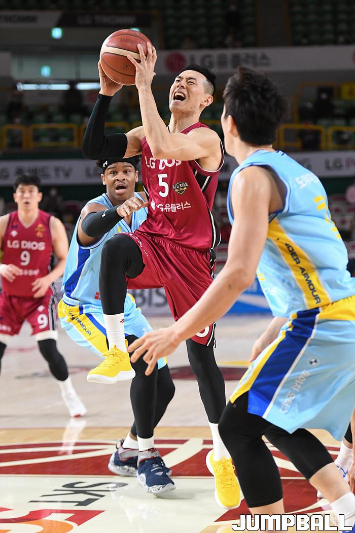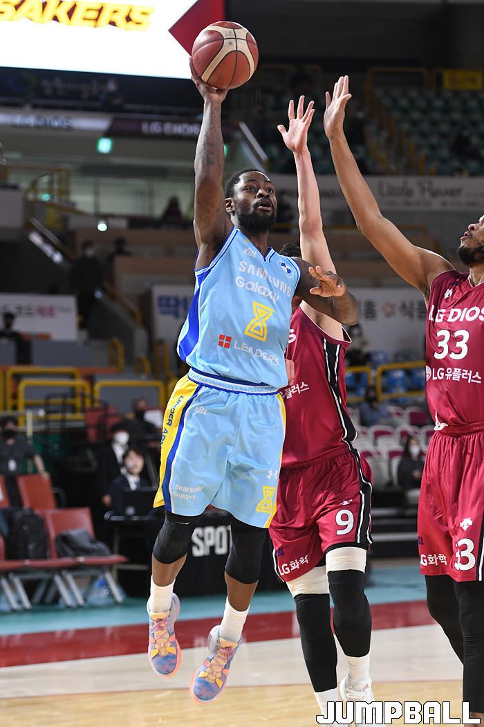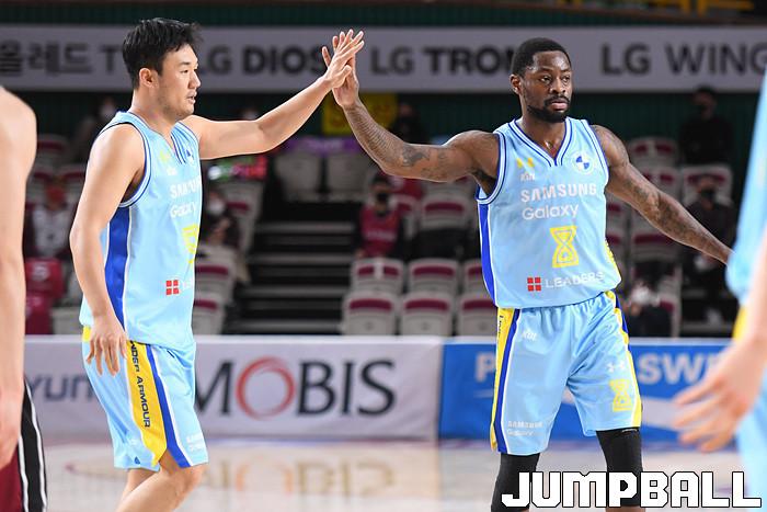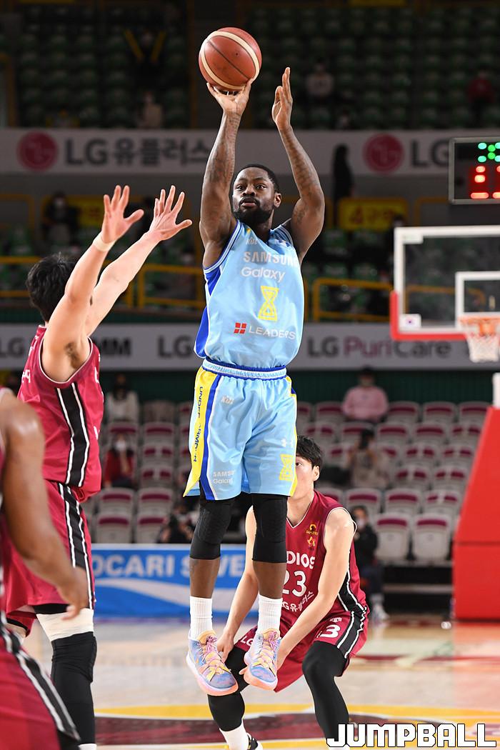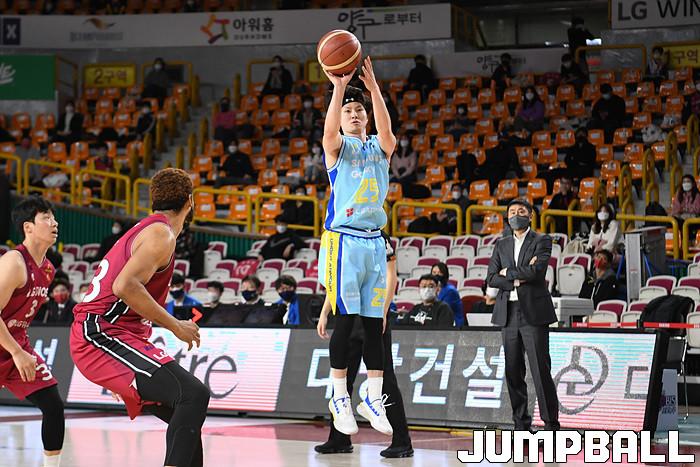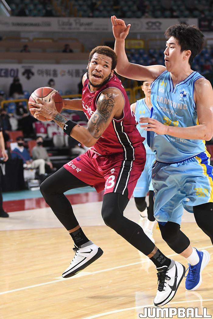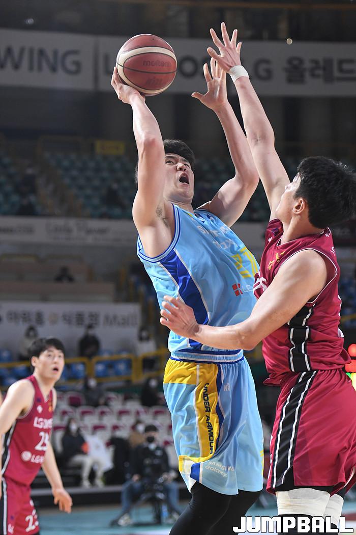 [점프볼=창원/박상혁 기자] 6일 창원실내체육관에서 열린 2020-2021 현대모비스 프로농구 창원 LG와 서울 삼성의 경기, 삼성이 트레이드 후 처음으로 가진 경기에서 LG에 73-64로 승리했다. LG와 삼성 화보