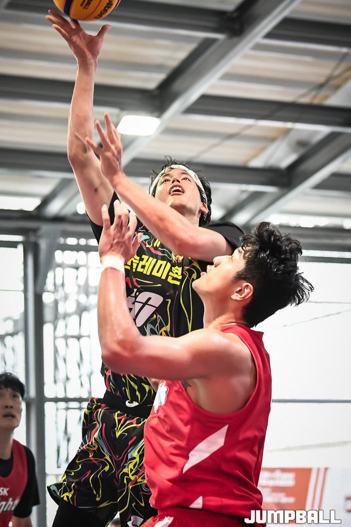 [점프볼=고양/유용우 기자] 16일 스타필드 고양 루프탑에 위치한 스포츠 몬스터 코트에서 열린 '까스명수 THE ORIGINAL 3대3농구대잔치' 한솔레미콘과 SK의 결승 경기, 한솔레미콘 이동준이 골밑 득점을 올리고 있다.
