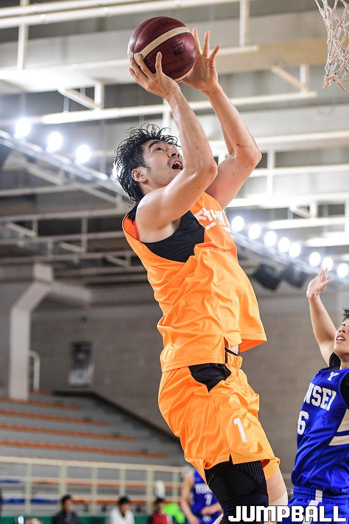 [점프볼=인천/박상혁 기자] 7일 인천삼산보조체육관에서 열린 인천전자랜드와 연세대의 연습경기, 전자랜드 민성주가 골밑에서 슛을 시도하고 있다.