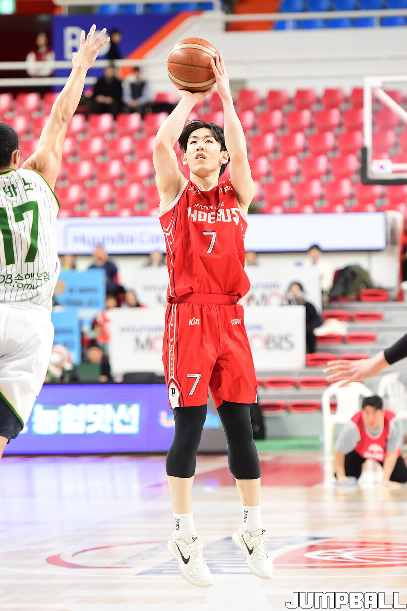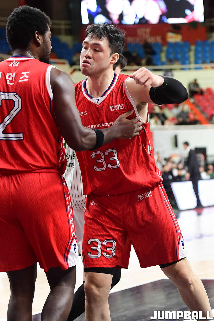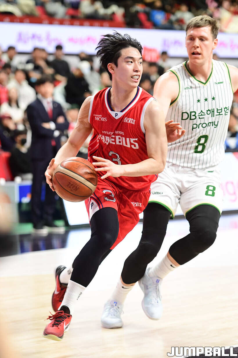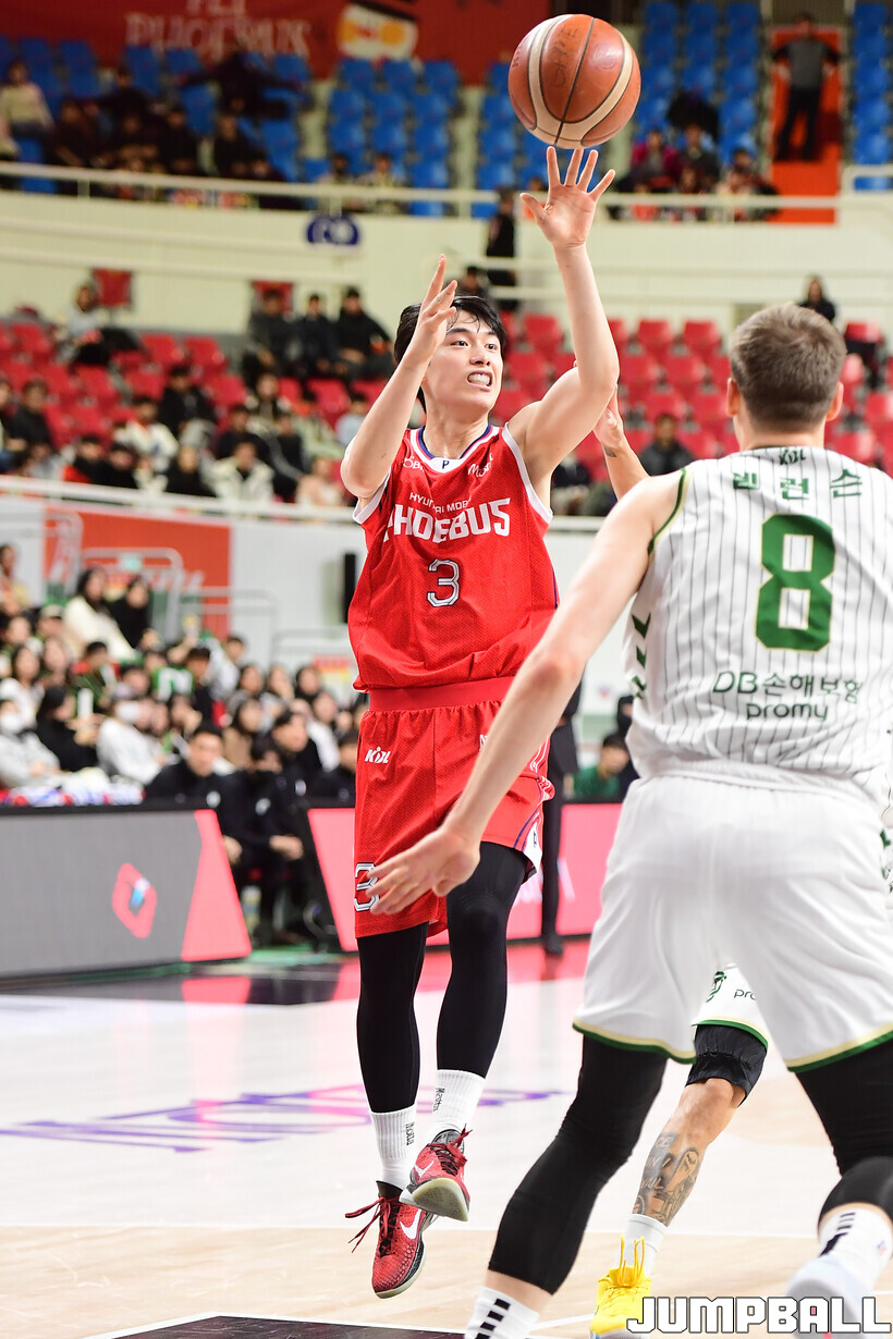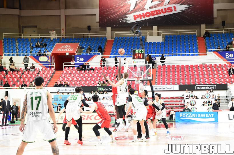 [점프볼=울산/박상혁 기자] 24일 울산동천체육관에서 열린 2025-2026 LG전자 프로농구 울산 현대모비스와 원주 DB의 경기, 현대모비스가 해먼즈와 서명진, 이승현의 활약으로 엘런슨과 알바노, 정효근, 강상재가 고른 활약을 보인 DB에 86-78로 승리했다.