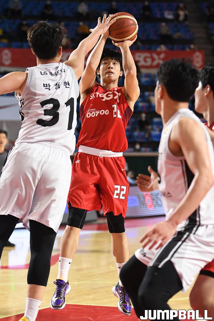 [점프볼=잠실학생/박상혁 기자] 1일 잠실학생체육관에서 열린 2020-2021 현대모비스 프로농구 서울 SK와 창원 LG의 경기, SK 오재현이 점프슛을 시도하고 있다.