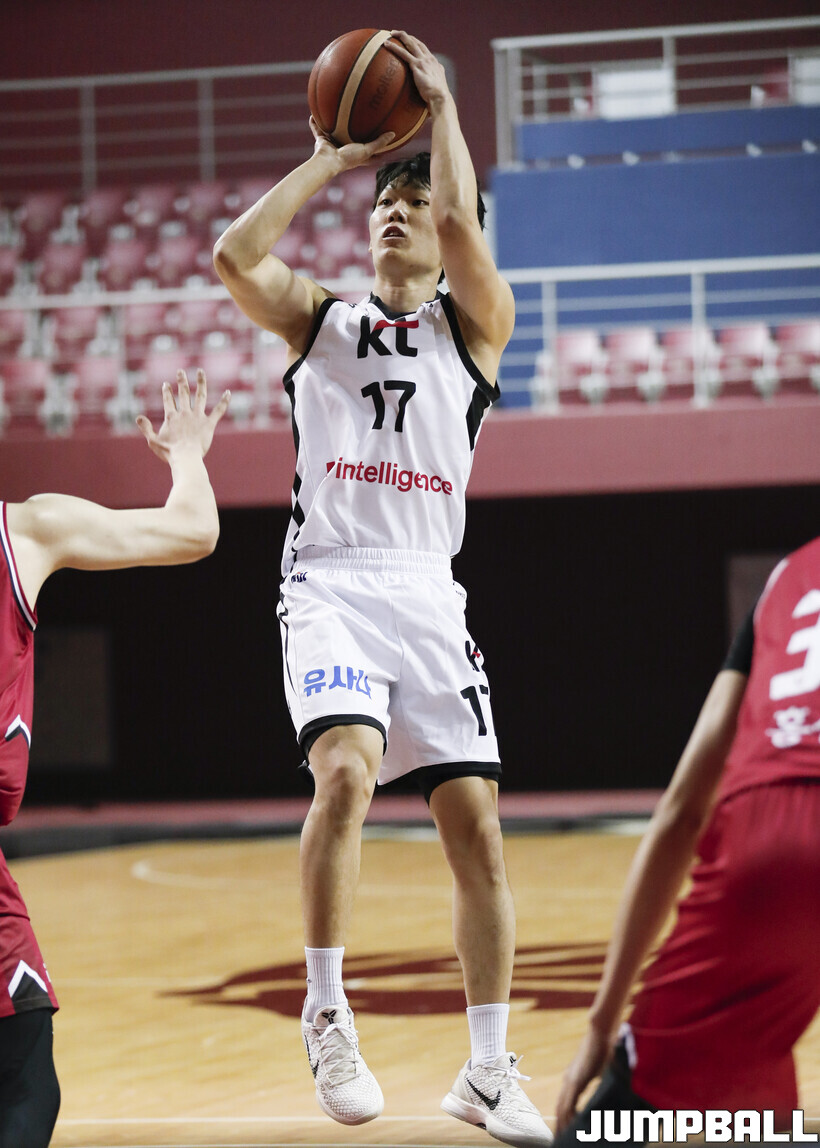 김준환은 상무 제대 후 1군에서는 두 경기만 소화했다. KT는 현재 평균 3점슛 성공 7.5개로 리그 최하위(10위)에 머물러 있다. 김준환의 득점력이 팀 외곽에 힘이 될 수 있을지 묻자 그는 “그건 감독님의 선택인 것 같다(웃음). 나는 그냥 묵묵히 내 운동하면서 기다리면 좋은 결과가 있을 것 같다”라고 말했다.