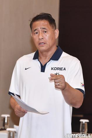 남자 농구 대표팀은 11일 인도네시아 자카르타 페이몬트 호텔 3층 회의실에서 12일 중국전을 대비해 비디오 미팅을 가졌다. 남자 농구 대표팀이 중국 선수 분석 영상을 진지하게 바라보고 있다.