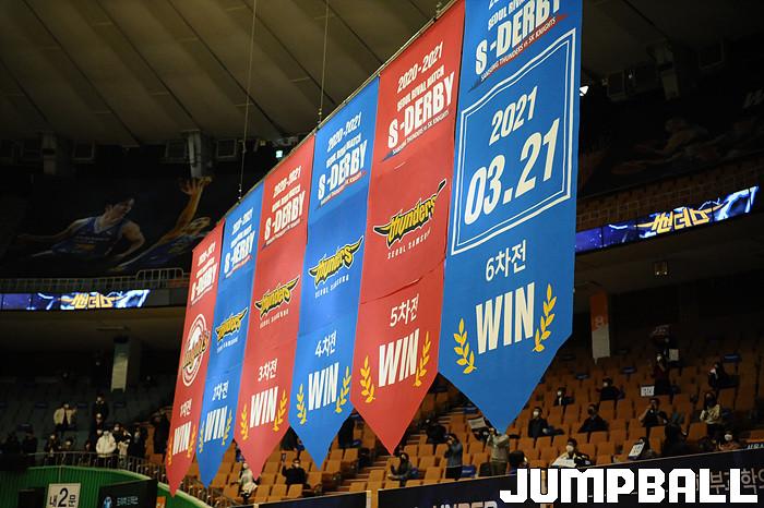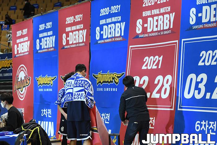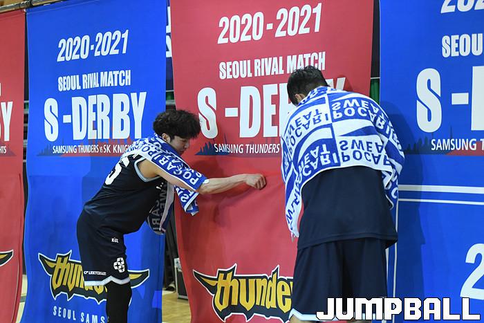 [점프볼=잠실실내/박상혁 기자] 28일 잠실실내체육관에서 열린 2020-2021 현대모비스 프로농구 서울 삼성과 서울 SK의 S-더비 경기, 삼성이 SK와 S-더비에서 87-69로 승리했다. 삼성과 SK 경기 화보