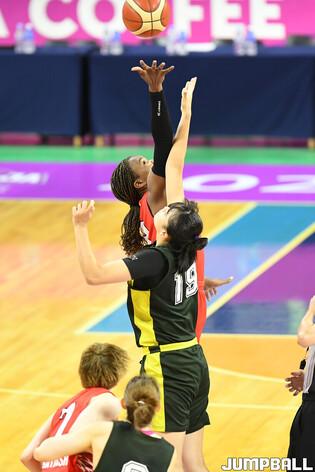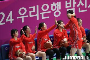 [점프볼=아산/박상혁 기자] 4일 아산 이순신체육관에서 열린 2024 우리은행 박신자컵 캐세이라이프와 후지쯔 레드웨이브의 경기, 후지쯔 미야시타 키호가 동료들과 하이파이브를 하고 있다.