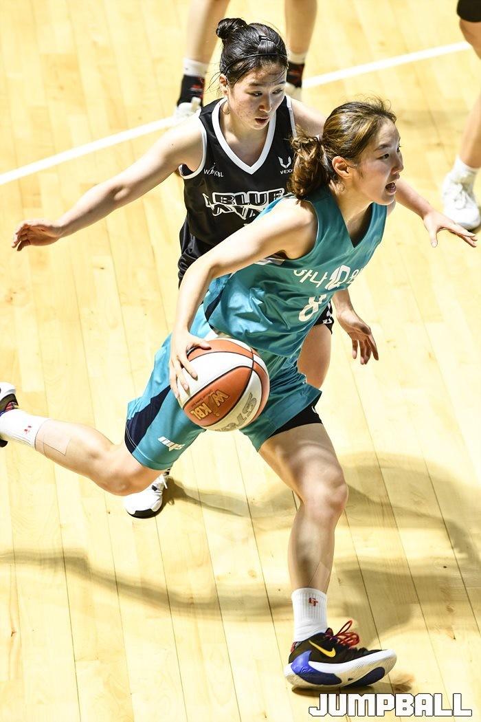 [점프볼=청라/유용우 기자] 7일 인천 서구 하나글로벌캠퍼스에 위치한 하나은행 연습체육관에서 열린 하나원큐와 삼성생명의 연습경기, 하나원큐 김지영이 돌파하고 있다.