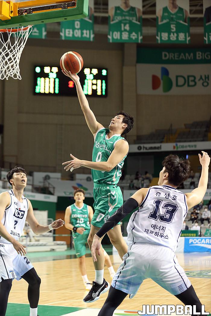 [점프볼=원주/한명석 기자] 25일 원주종합체육관에서 열린 2020-2021 현대모비스 프로농구 원주DB와 전주KCC와의 경기, 원주 DB 나카무라 타이치 선수가 레이업 슛을 시도하고 있다.