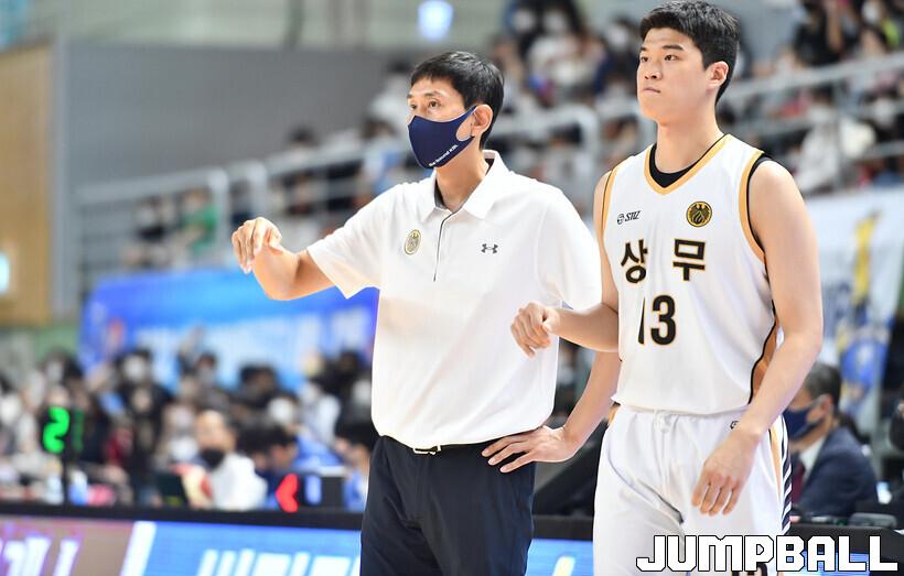 1일 통영체육관에서 열린 2022 MG새마을금고 KBL 컵대회로 창원 LG와 상무의 경기, 상무 장창곤 감독이 작전을 지시하고 있다.