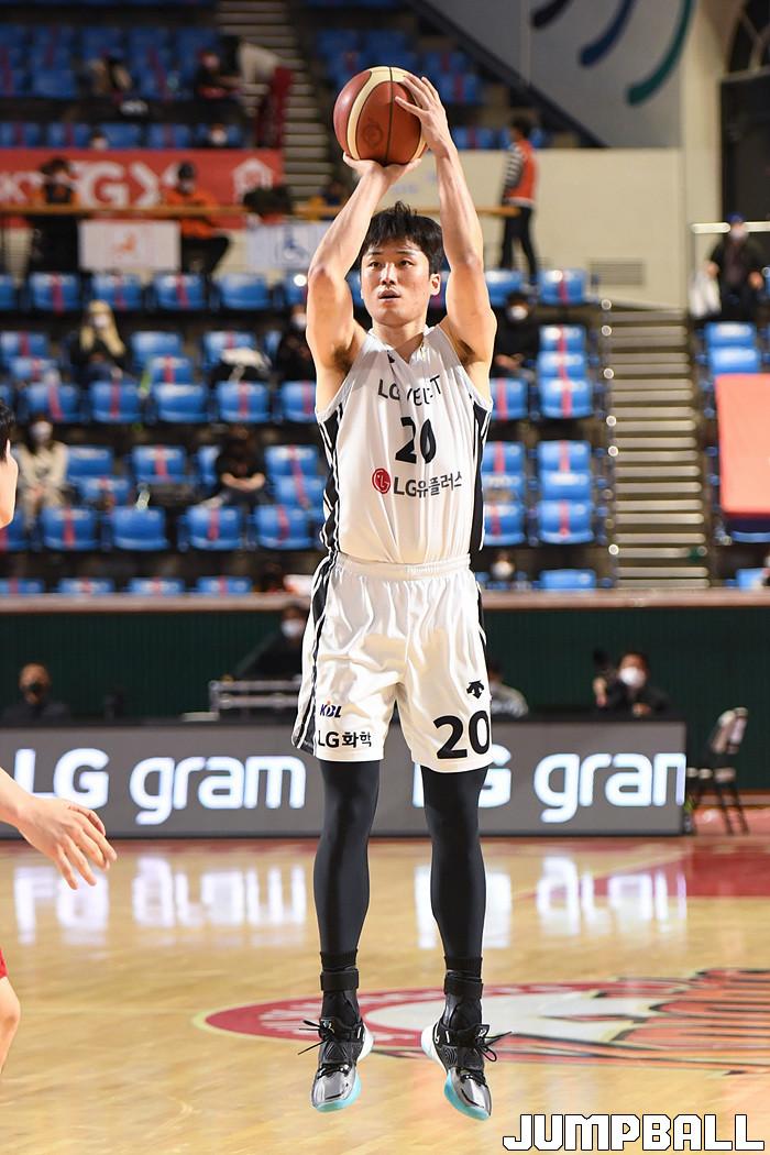 [점프볼=잠실학생/박상혁 기자] 1일 잠실학생체육관에서 열린 2020-2021 현대모비스 프로농구 서울 SK와 창원 LG의 경기, LG 김동량이 3점슛을 시도하고 있다.