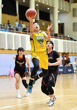 11일 양구 문화체육회관에서 열린 2023 한국중고농구 주말리그 왕중왕전 여고부 결승전으로 온양여고와 분당경영고의 경기, 분당경영고 변하정이 골밑을 가르키며 지시하고 있다.