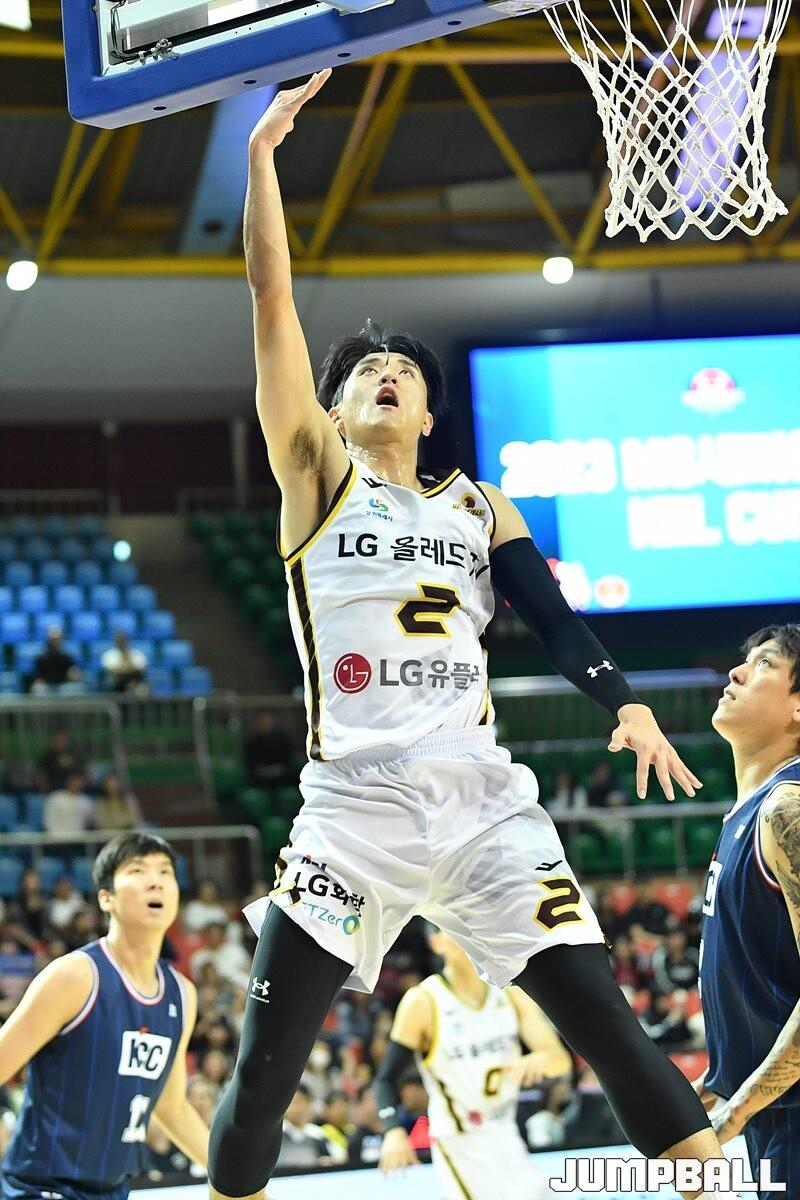 13일 군산월명체육관에서 열린 2023 MG새마을금고 KBL 컵대회 LG와 KCC의 예선 경기, LG 이승우가 공격을 시도하고 있다. [점프볼=군산/유용우 기자]