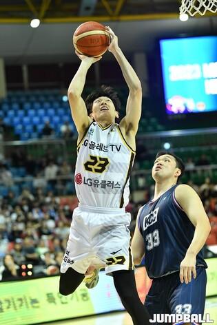 13일 군산월명체육관에서 열린 2023 MG새마을금고 KBL 컵대회 LG와 KCC의 예선 경기, KCC 허웅이 레이업을 올리고 있다. [점프볼=군산/유용우 기자]