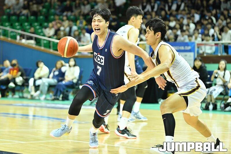 13일 군산월명체육관에서 열린 2023 MG새마을금고 KBL 컵대회 LG와 KCC의 예선 경기, KCC 정창영이 돌파를 하고 있다. [점프볼=군산/유용우 기자]