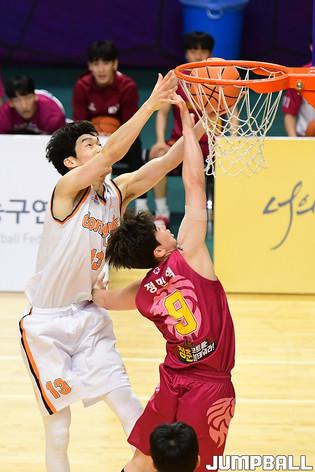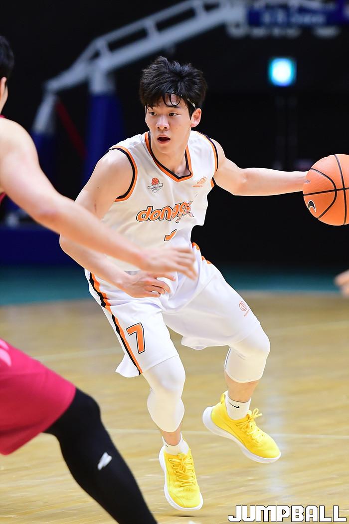 [점프볼=수원/박상혁 기자] 26일 서수원칠보체육관에서 열린 2021 KUSF 대학농구 U리그 동국대와 경희대 경기, 동국대 이승훈이 공격을 시도하고 있다.