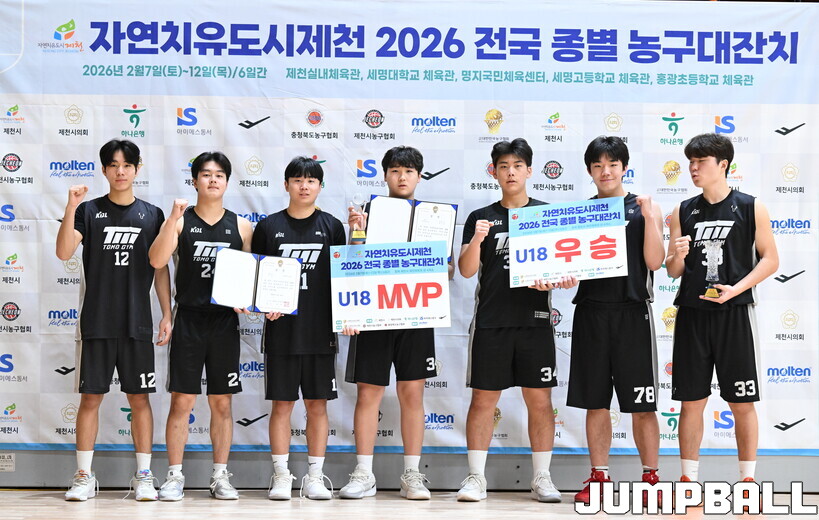 동대문토모 U18은 12일 제천 명지체육센터에서 열린 자연치유도시제천 2026 전국 종별농구대잔치 결승전에서 평택김훈을 47-32로 꺾고 우승을 차지했다. 최고의 선수는 단연 안용준(185cm, 휘봉고2). 이번 대회 평균 12.6점을 기록, 매 경기 장기인 슈팅을 앞세워 득점력을 뽐내며 최고의 고등부 선수가 됐다.