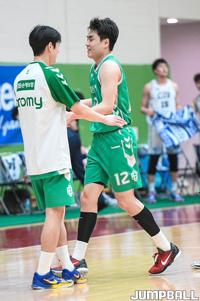 [점프볼=이천/박상혁 기자] 23일 이천 LG 챔피언스파크에서 열린 2020-2021 KBL D리그 2차대회 KCC와 DB의 경기, DB 김훈이 김영훈과 하이파이브를 하고 있다.