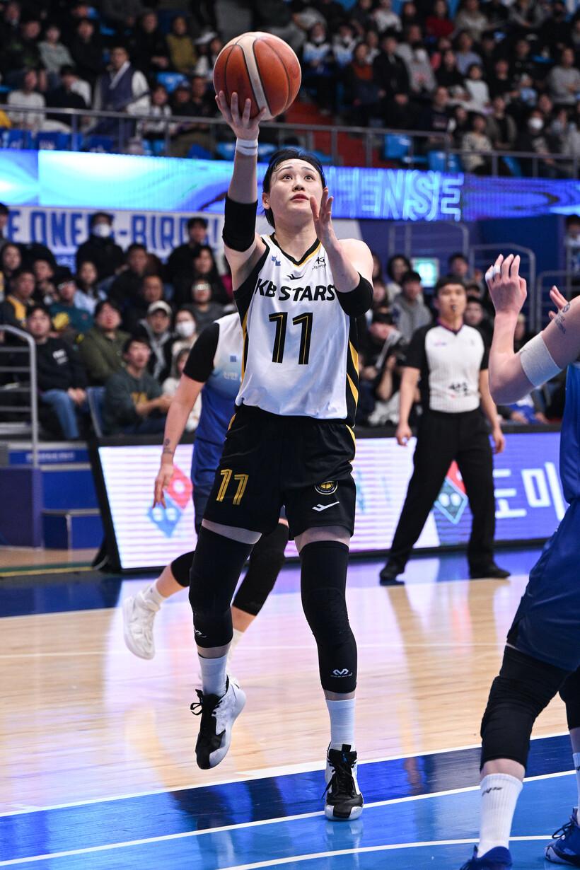 신인 송윤하(21점 5리바운드 3어시스트)가 커리어하이를 작성했고 나가타 모에(16점 4리바운드 4어시스트), 강이슬(11점 4리바운드 9어시스트), 허예은(13점 6리바운드 5어시스트)도 승리에 힘을 보탰다. 8승 15패가 된 KB스타즈는 신한은행과의 4위 싸움에 더욱 불을 지폈다.