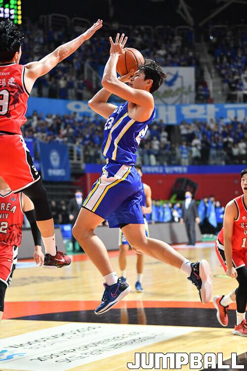 28일 고양실내체육관에서 열린 고려대와 연세대의 2022 정기전, 연세대 이규태가 슛을 시도하고 있다. [점프볼=고양/유용우 기자]