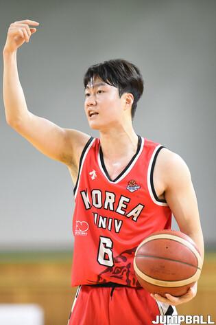 [점프볼=안암/박상혁 기자] 28일 고려대학교 화정체육관에서 열린 2024 KUSF 대학농구 U-리그 고려대와 성균관대의 8강전 경기, 고려대 석준휘가 속공 상황에서 레이업슛을 시도하고 있다.