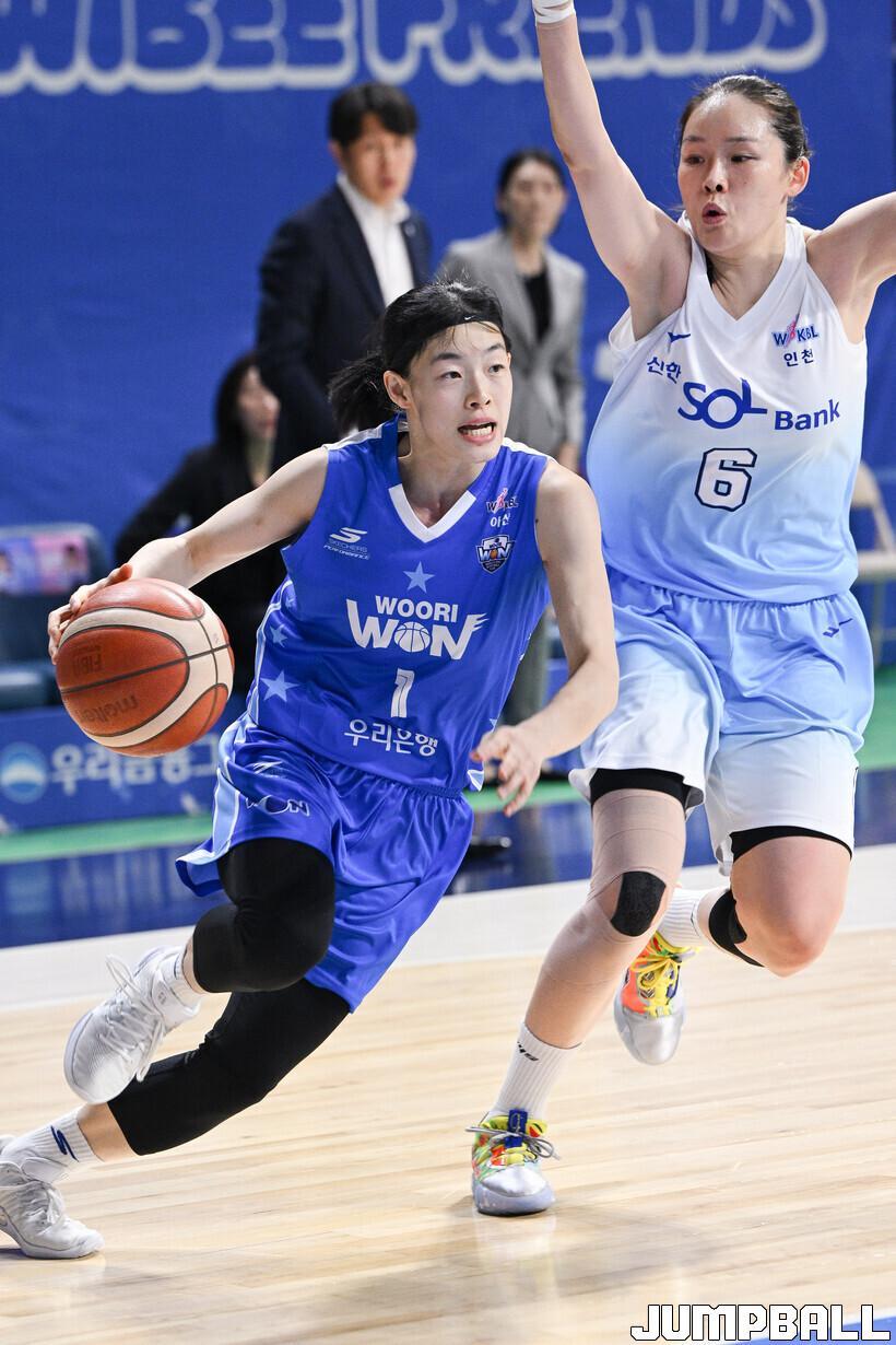 아산 우리은행은 22일 아산이순신체육관에서 BNK금융 2025~2026 여자프로농구 정규리그 1라운드 인천 신한은행과 맞대결에서 75-51로 승리했다.