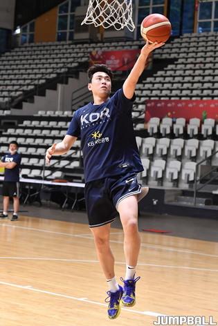 남자 농구 대표팀은 11일 인도네시아 자카르타 GBK 바스켓볼 홀에서 공식 볼 훈련을 가졌다. 대표팀 양홍석이 연습 훈련에서 3점슛 득점후 활짝 웃고 있다.