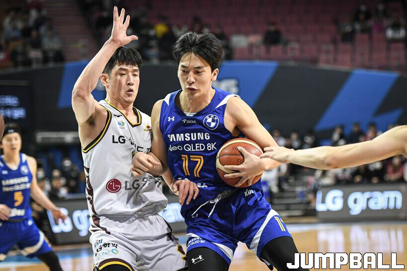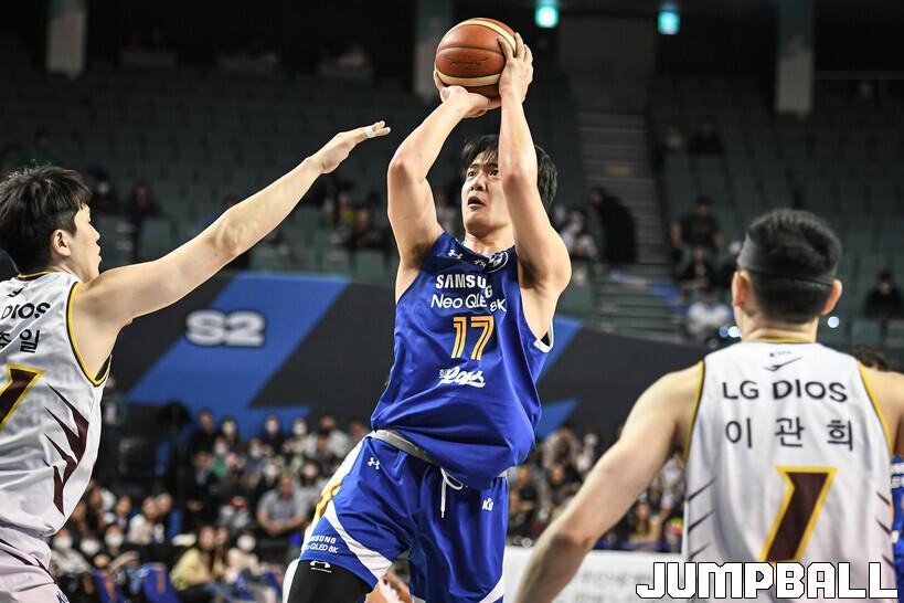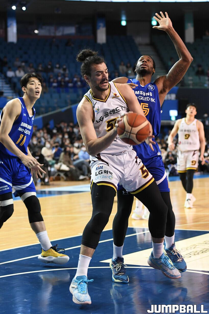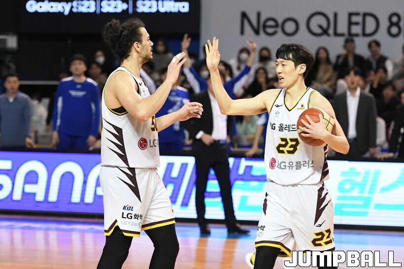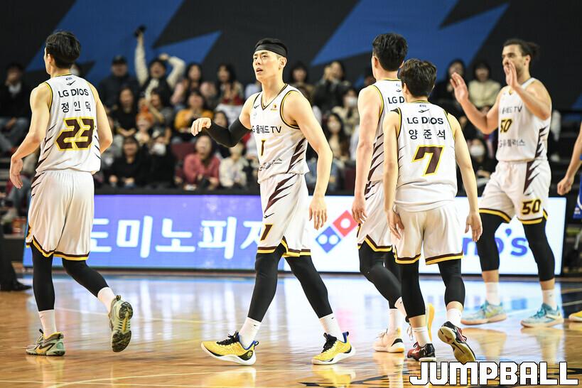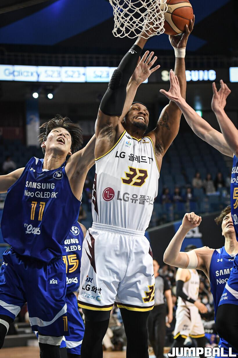 18일 잠실실내체육관에서 열린 2022-2023 SKT 에이닷 프로농구 서울 삼성과 창원 LG의 경기, LG가 삼성에 접전끝에 77-76으로 승리했다. 삼성과 LG 경기 화보.