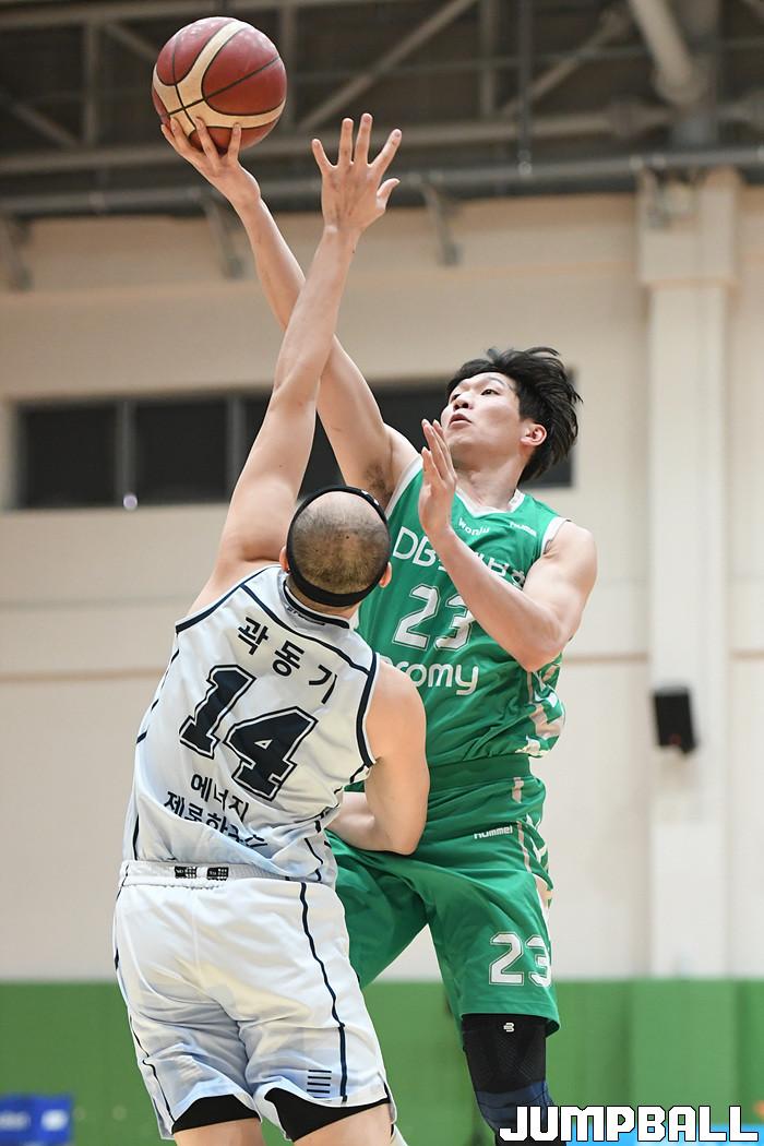 [점프볼=이천/박상혁 기자] 23일 이천 LG 챔피언스파크에서 열린 2020-2021 KBL D리그 2차대회 KCC와 DB의 경기, DB 배강률이 레이업슛을 시도하고 있다.
