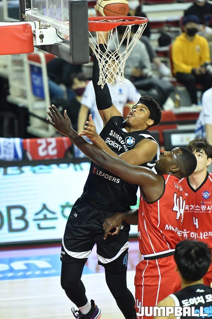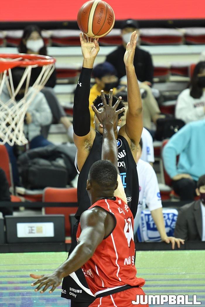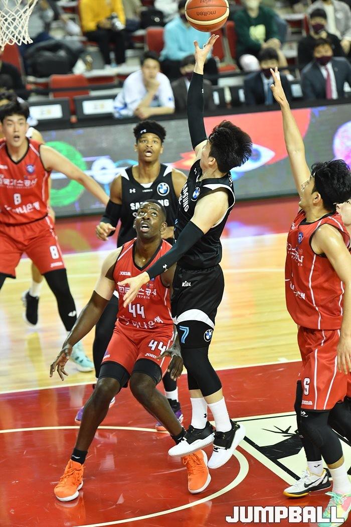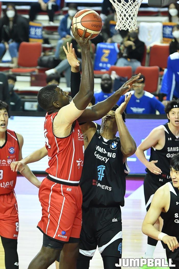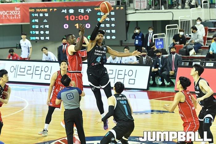 24일 대구실내체육관에서 열린 2021-2022 KGC인삼공사 정관장 프로농구 대구 한국가스공사와 서울 삼성의 경기, 한국가스공사가 95-86으로 삼성에 승리했다.