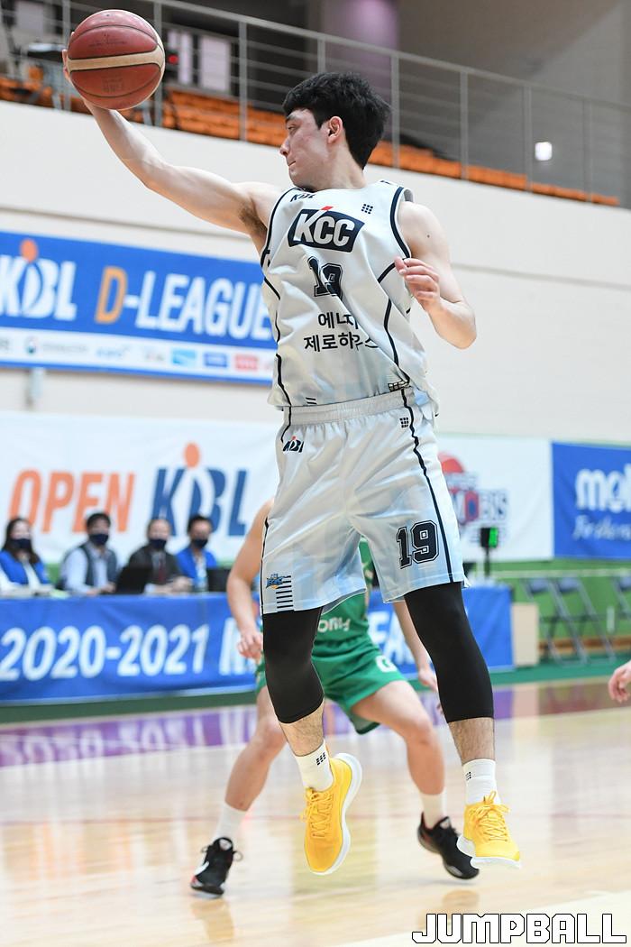 [점프볼=이천/박상혁 기자] 23일 이천 LG 챔피언스파크에서 열린 2020-2021 KBL D리그 2차대회 KCC와 DB의 경기, KCC 이근휘가 리바운드를 잡아내고 있다.