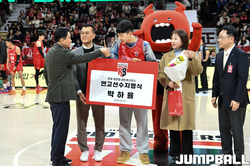바로 KBL 연고 선수 박하율(호계중2)과 강지훈, 이우재(이상 명지중1)이다. 이들의 공통점은 구단의 최초 연고 지명 선수로 구단 역사의 시작이기도 하다. 박하율은 지난 3월 6일 안양 정관장 첫 연고 선수로 지명됐고, 강지훈과 이우재는 지난 2025년 12월 고양 소노 첫 연고 선수로 지명식을 마쳤다. 이들은 앞으로 구단의 지원을 받으며 유망주로 성장이 기대되는 이들이다.