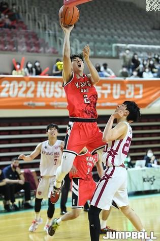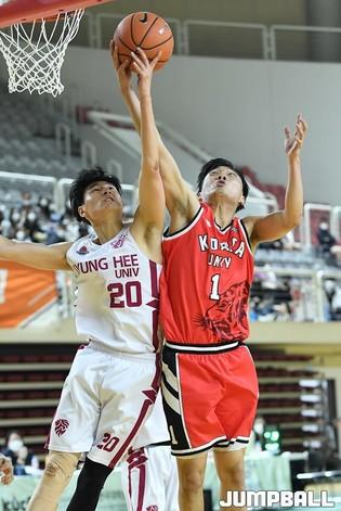 26일 고려대 화정체육관에서 열린 2022 KUSF 대학농구 U-리그 고려대와 경희대의 경기, 고려대 여준석이 골밑 공격을 시도하고 있다.