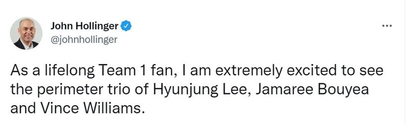 홀린저 기자는 이전부터 줄곧 이현중의 가능성을 높게 보던 기자 중에 하나였다. 이현중과 관련된 별도의 코멘트는 없었지만, 드래프트를 앞둔 시점에 공신력이 높은 기자들을 통해 계속해서 이름이 언급된 건 분명 반가운 일이다. 이제 이현중이 본인의 가치를 증명할 일만 남았다.