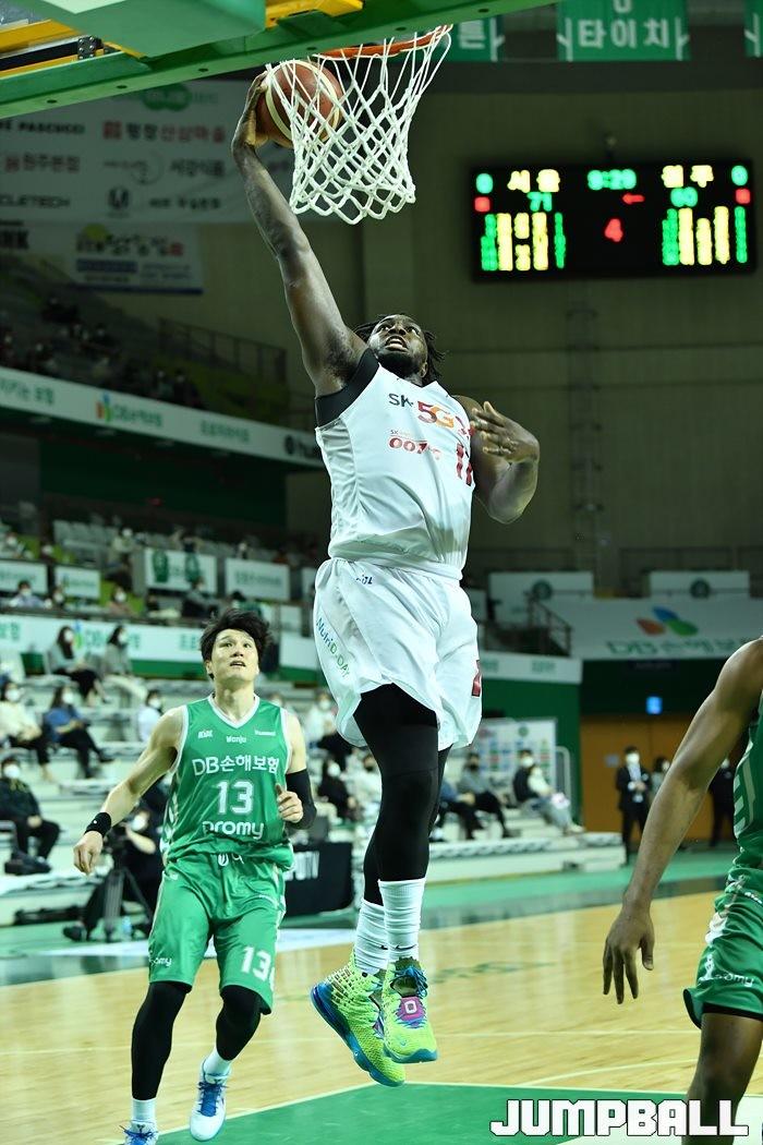 [점프볼=원주/유용우 기자] 13일 원주 종합체육관에서 열린 2020-2021 현대모비스 프로농구 원주 DB와 서울 SK의 경기, SK 자밀 워니가 덩크를 하고 있다.
