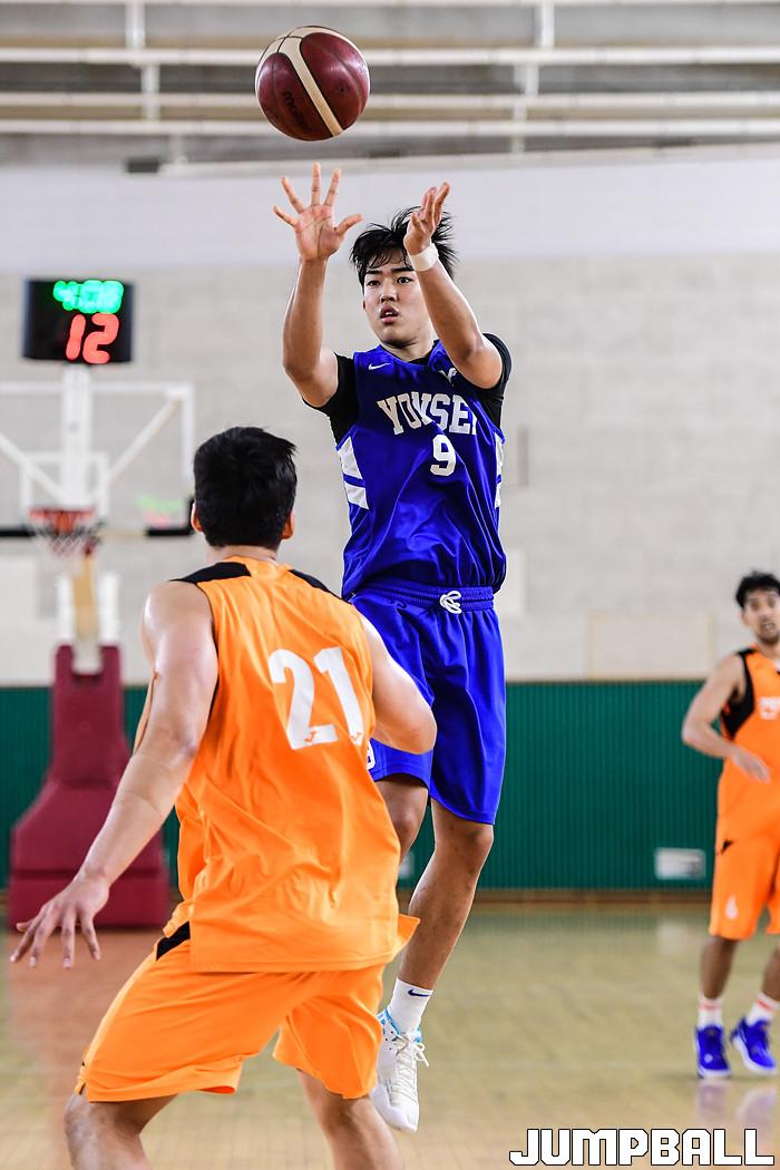 [점프볼=인천/박상혁 기자] 7일 인천삼산보조체육관에서 열린 인천전자랜드와 연세대의 연습경기, 연세대 박지원이 골밑에 있는 한승희에게 패스를 하고 있다.