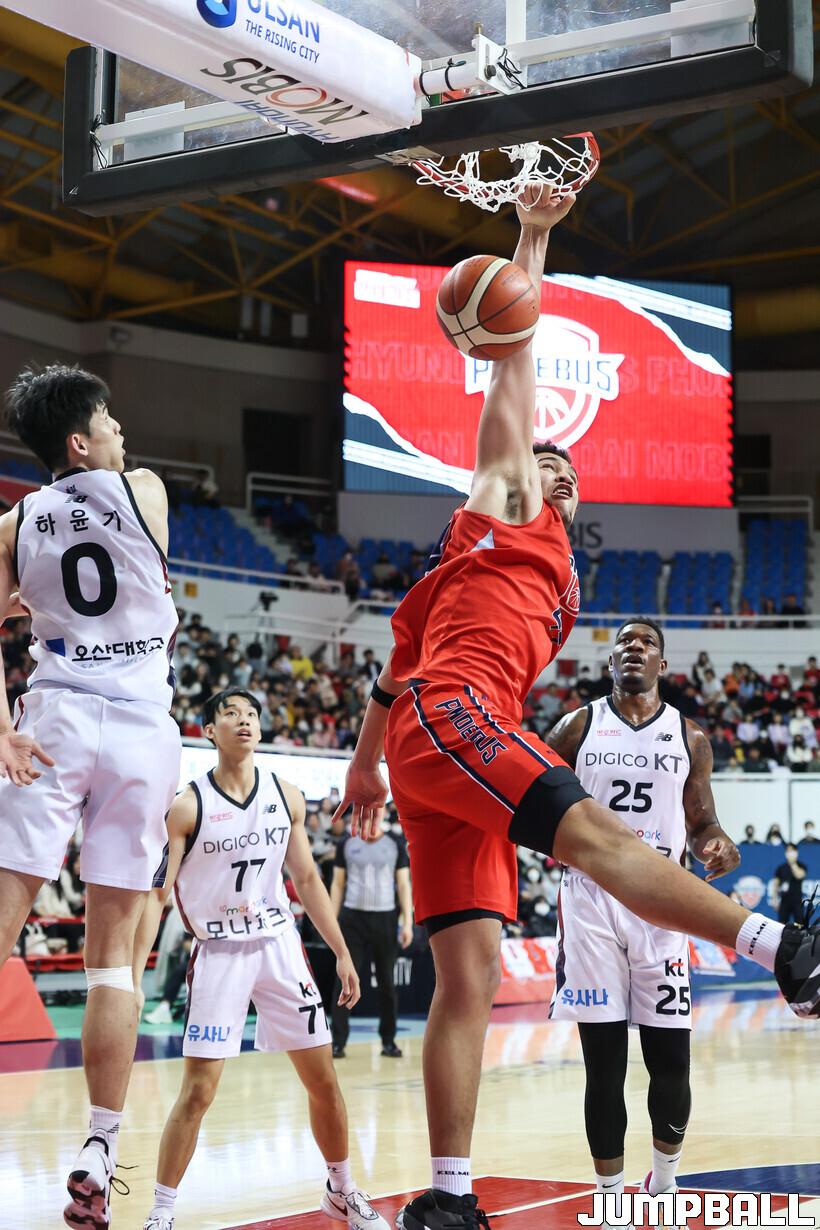 [점프볼=윤민호 기자] 울산 현대모비스는 18일 울산동천체육관에서 열린 2022~2023 SKT 에이닷 프로농구 수원 KT와 홈 경기에서 69-59로 이겼다.