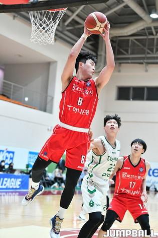 24일 이천 LG챔피언스파크 실내농구장에서 열린 2021-2022 KBL D리그 KT와 SK의 경기. SK 김승원이 수비 사이엥서 레이업을 올려넣고 있다.