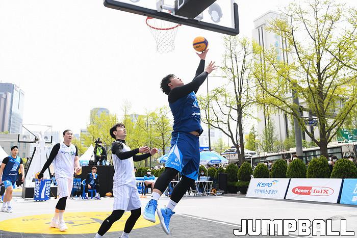 [점프볼=서울/박상혁 기자] 11일 서울신문사앞 특설코트에서 KB국민은행 LIIV M KBA 3X3 코리아투어 2일차 경기가 열렸다. 아프리카가 골밑에서 슛을 시도하고 있다.