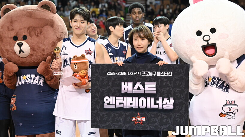팀 코니 양준석은 18일 잠실체육관에서 열린 2025-2026 LG전자 프로농구 올스타게임 팀 브라운과의 경기에서 27점 5어시스트로 활약했다. 27점 모두 3점슛으로 기록한 것. 3점슛 14개를 던져 9개를 성공시키는 쾌조의 슛 감을 뽐냈다. 팀 코니는 109-131로 패했으나 경기 후 양준석은 베스트 엔터테이너상을 수상했다.