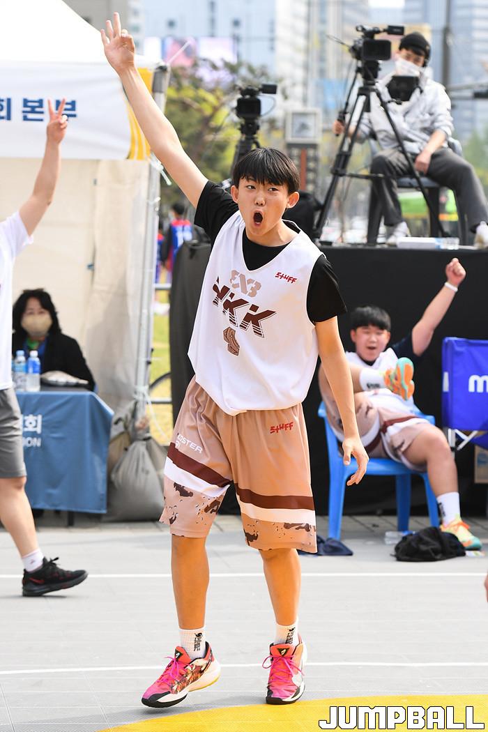 [점프볼=서울/박상혁 기자] 11일 서울신문사앞 특설코트에서 KB국민은행 LIIV M KBA 3X3 코리아투어 2일차 경기가 열렸다. 중등부 원주 YKK가 2점슛을 성공시킨후 세레머니를 하고 있다.